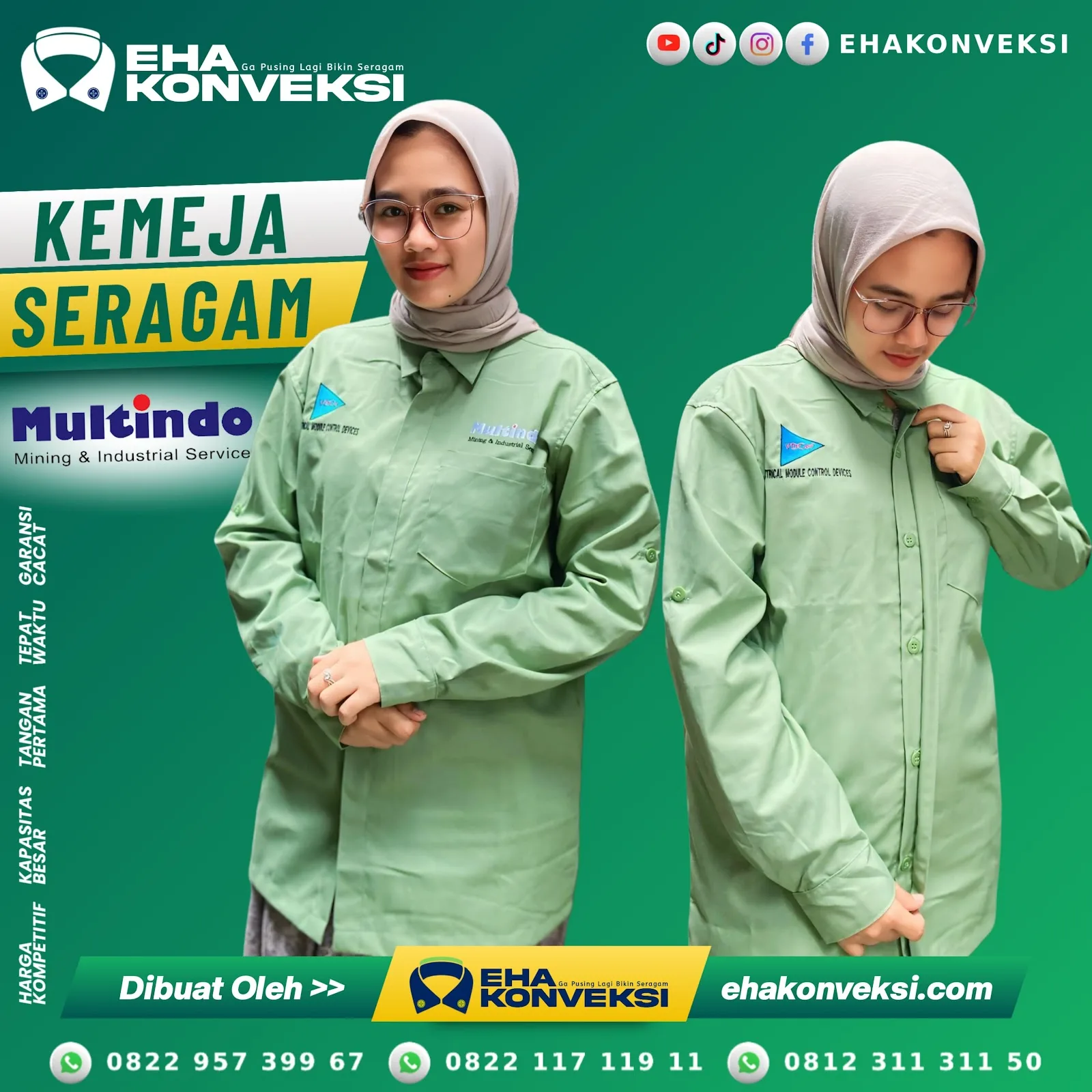 Eha Konveksi adalah vendor seragam kerja & konveksi kemeja kantor yang berpengalaman lebih dari 13 tahun. Kami dipercaya oleh lebih dari 3.261 perusahaan, instansi, dan komunitas di seluruh Indonesia dalam pembuatan :